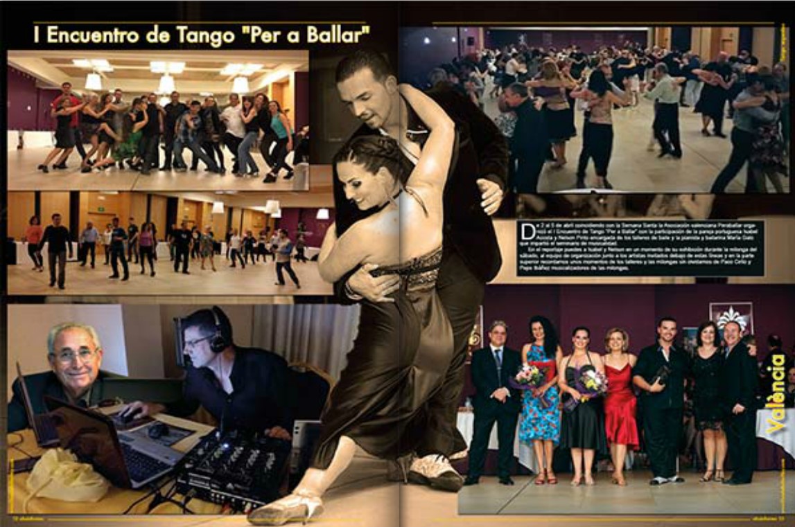 Del 2 al 5 de abril coincidiendo con la Semana Santa la Asociación valenciana Peraballar organizó el I Encuentro de Tango «Per a Ballar», con la participación de la pareja portuguesa Isabel Acosta y Nelson Pinto encargada de los talleres de baile y la pianista y bailarina María Galo que impartió el seminario de musicalidad.